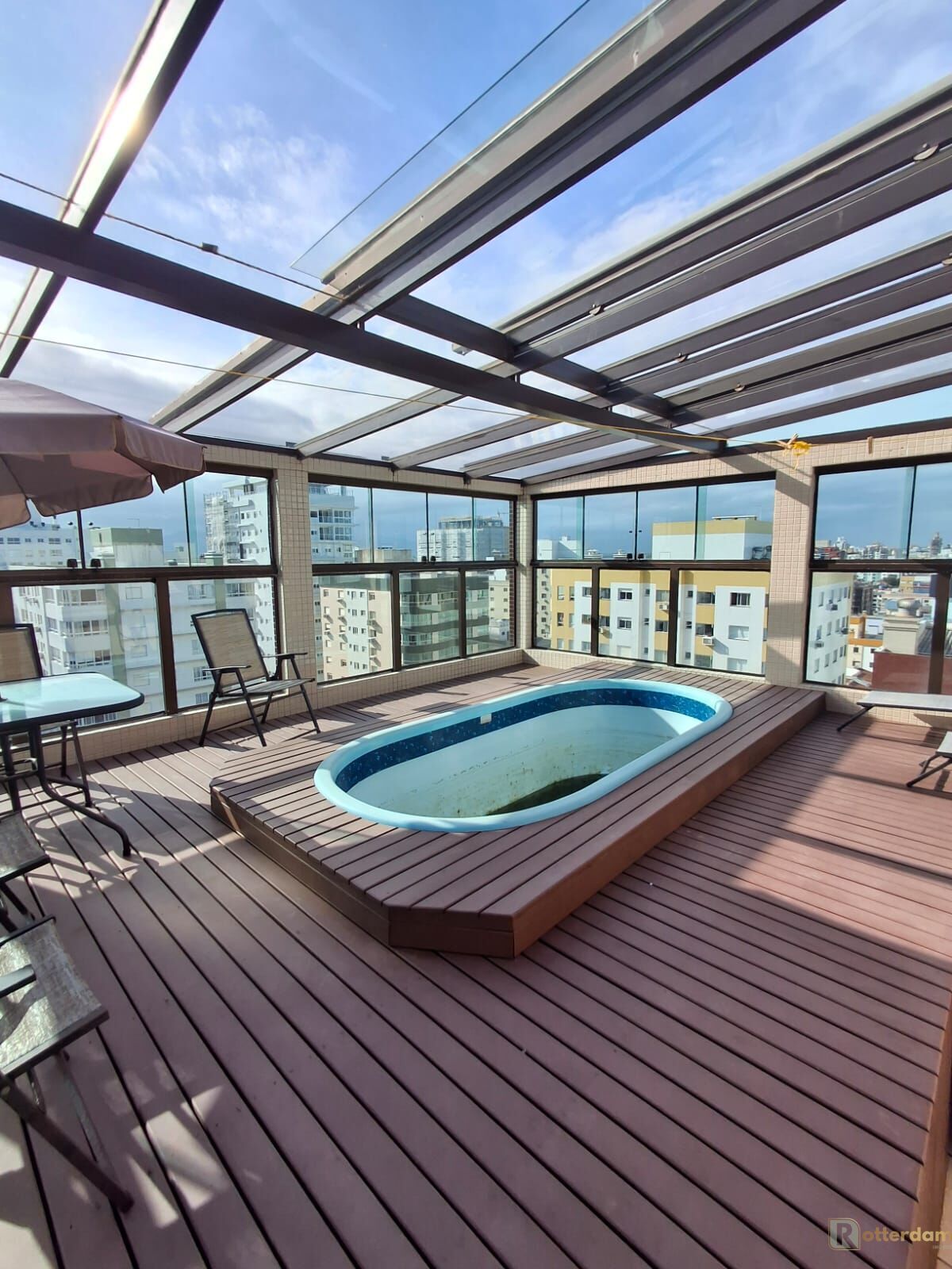Cobertura com vista mar e serra.