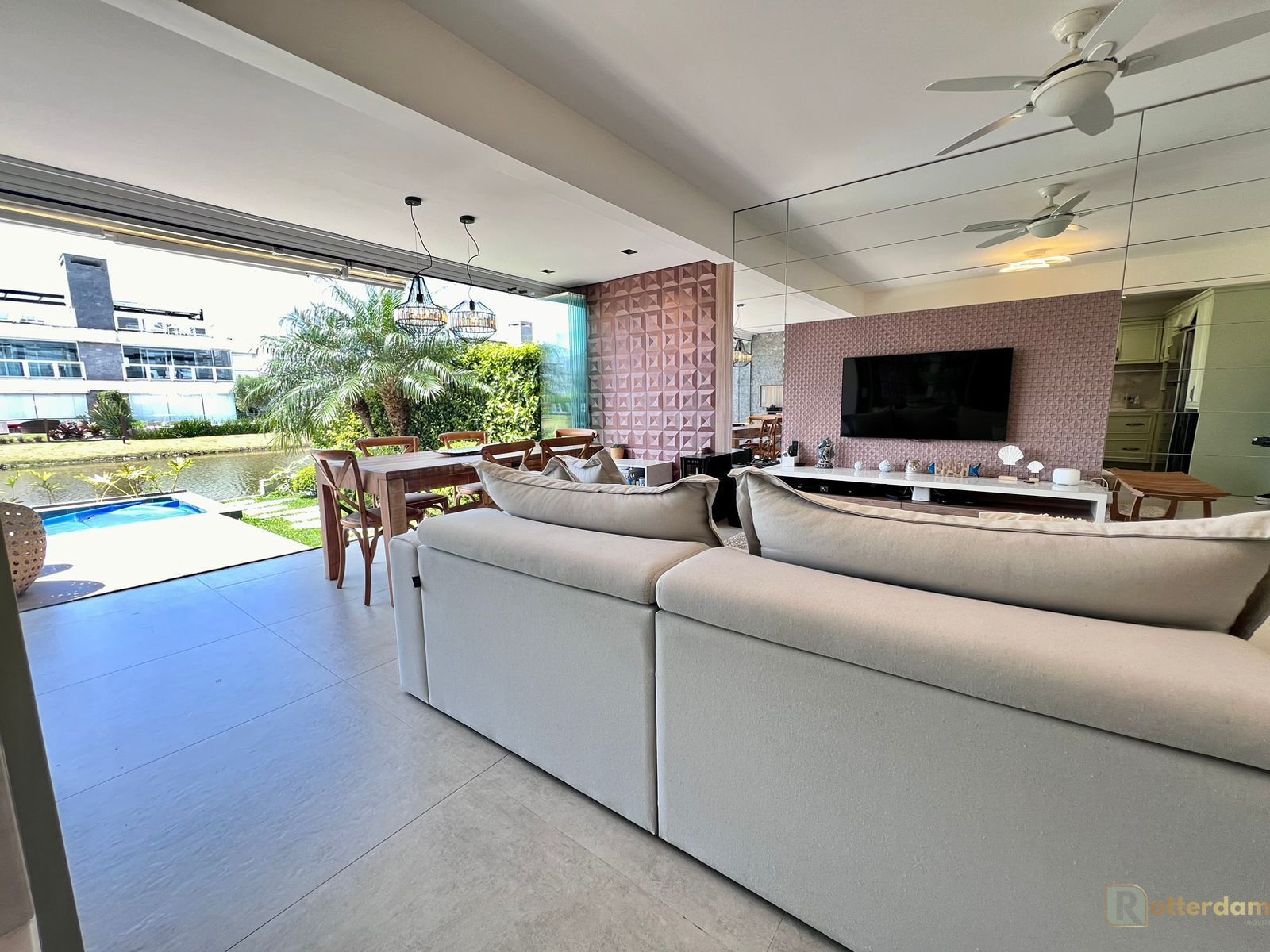 2 dormitórios, suíte, banheiro social, living integrado, cozinha americana toda em laca fosca, área de serviço, sistema euroglass (abertura 100%), piscina em Concreto aquecida, deck em porcelanato, paisagismo e iluminação, mobiliado e decorado!